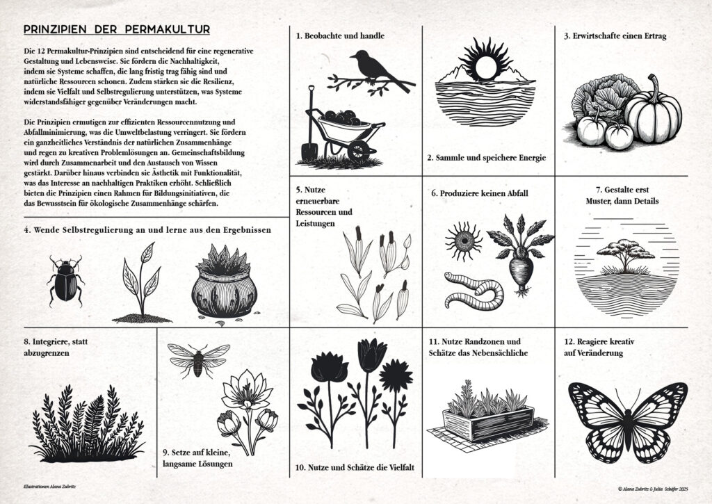 Permakultur schöpft aus indigenen Kulturen und traditionellen Praktiken und basiert auf der Beobachtung und Nachahmung von Ökosystemen und Kreisläufen in der Natur. Sie vereint traditionelles Wissen, ökologisches Bewusstsein, Design Thinking und positive Lösungsansätze und bietet so einen stimmigen Rahmen für nachhaltiges Leben, Fülle, Regeneration und Wohlbefinden. Permakulturelles Design Thinking ist in jeder Größenordnung und in unterschiedlichsten Kontexten anwendbar – ob städtisch oder ländlich, im globalen Süden oder Norden.